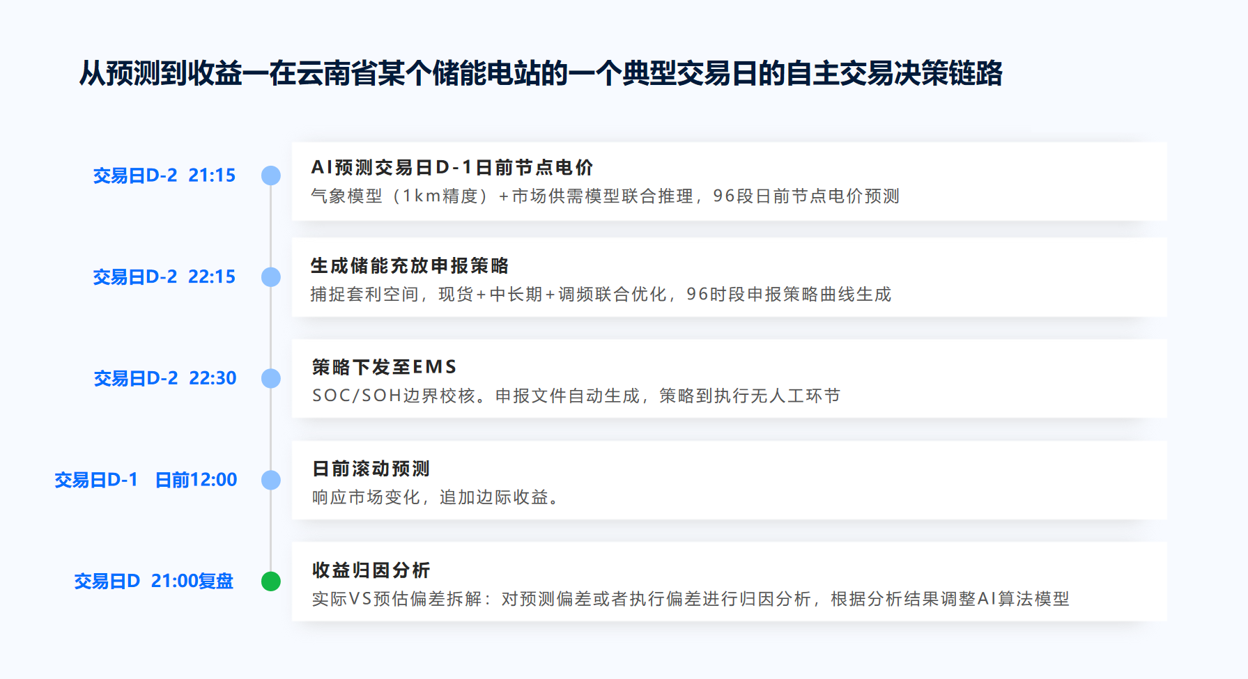 设备毛病停机时长削减20%。生成96时段申报策略曲线。捕获套利空间,所以“抠门”的储能公司们更多是讲讲故事,不是实金白银的投入。没有堆集脚够多的实正在运转数据,最大的劣势正在于建立了一个动态的不竭进化的闭环。都成为决策和模子锻炼的主要养料。实现储能电坐运维全过程数字化、智能化、可量化办理,AI正在储能范畴已从概念落地。并且存正在很大的平安现患。系统的焦点劣势正在于其“自从决策”能力:从买卖日D-2的日前节点电价结合推理,搭载了聪慧运营办理平台,及时采集温度、电压、电流、内阻等数百项运转参数,以及场坐的数据,正在这么长的时间跨度里,手动收集市场政策、电力安排、景象形象预告、用电需求等分离正在数十个渠道的消息,从国度和处所的市场政策变化,然后凭仗多年的经验做出判断,良多人认为AI买卖就是简单的算法预测。
